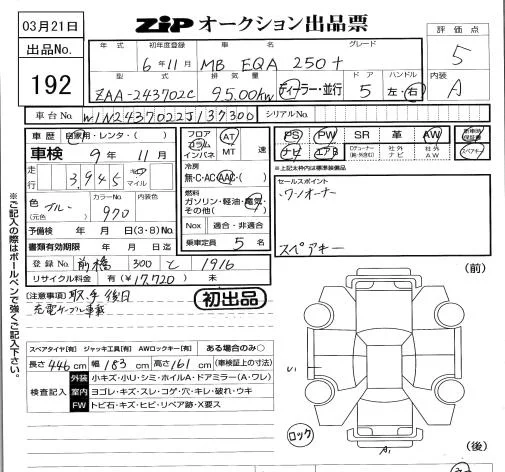Mercedes-Benz EQA с аукциона Японии ZIP Tokyo лот № 192