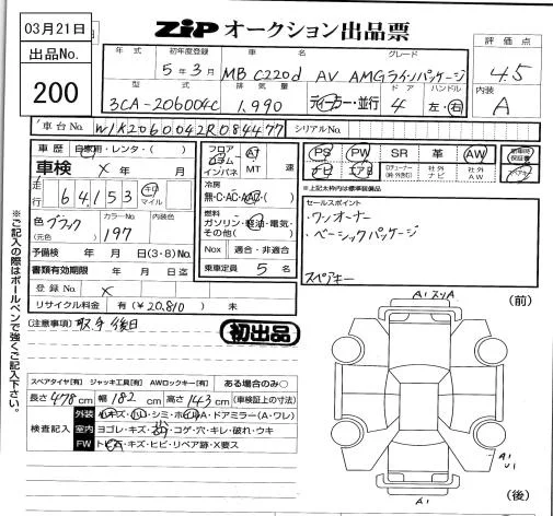 Mercedes-Benz C CLASS с аукциона Японии ZIP Tokyo лот № 200