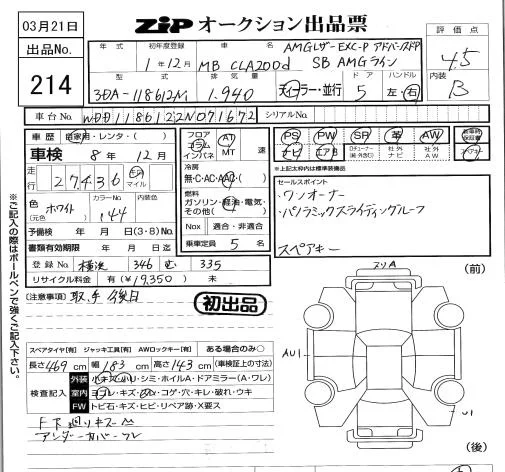 Mercedes-Benz CLA CLASS с аукциона Японии ZIP Tokyo лот № 214