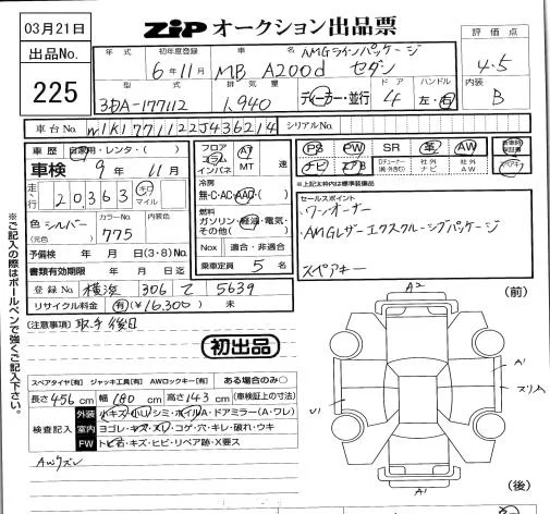 Mercedes-Benz A CLASS с аукциона Японии ZIP Tokyo лот № 225