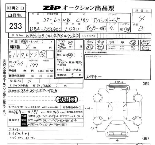 Mercedes-Benz C CLASS с аукциона Японии ZIP Tokyo лот № 233