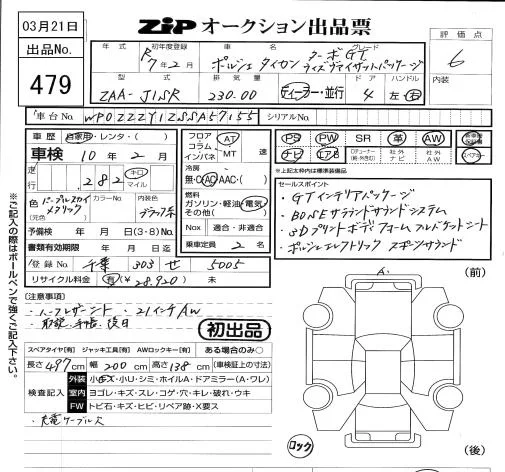 Porsche TAYCAN с аукциона Японии ZIP Tokyo лот № 479