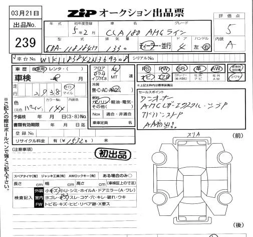 Mercedes-Benz CLA CLASS с аукциона Японии ZIP Tokyo лот № 239