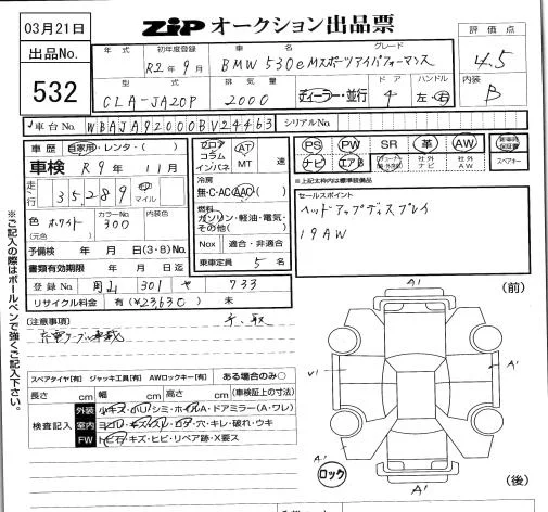 BMW 5-Series с аукциона Японии ZIP Tokyo лот № 532