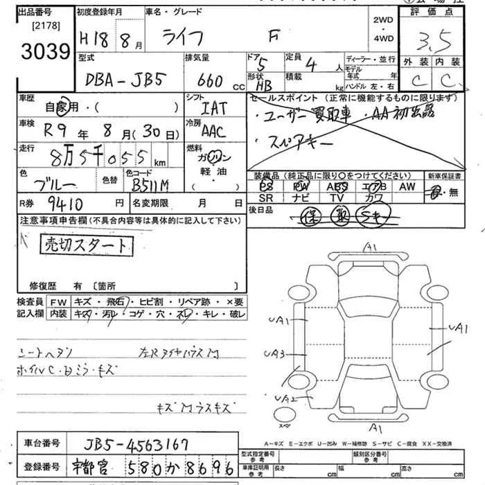 Honda LIFE с аукциона Японии JU Tokyo лот № 3039