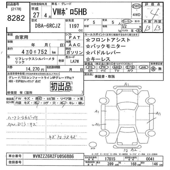Volkswagen Polo с аукциона Японии JU Tokyo лот № 8282