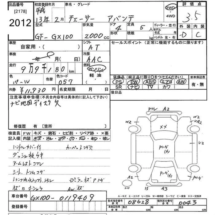 Toyota CHASER с аукциона Японии JU Tokyo лот № 2012