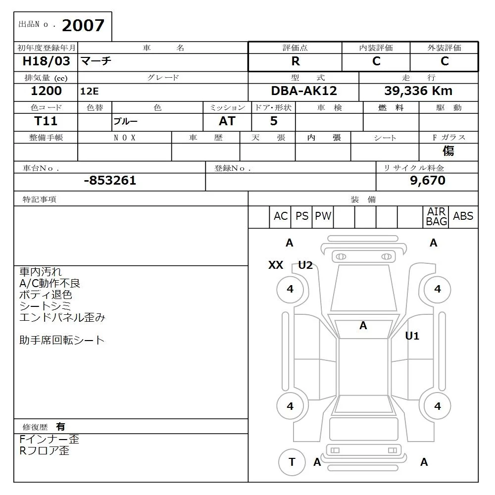 Nissan MARCH с аукциона Японии NISSAN Osaka лот № 2007