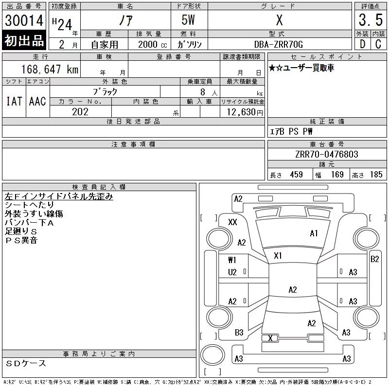 Toyota NOAH с аукциона Японии CAA Gifu лот № 30014