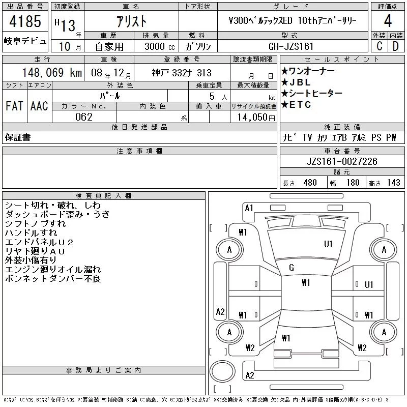 Toyota ARISTO с аукциона Японии CAA Gifu лот № 4185