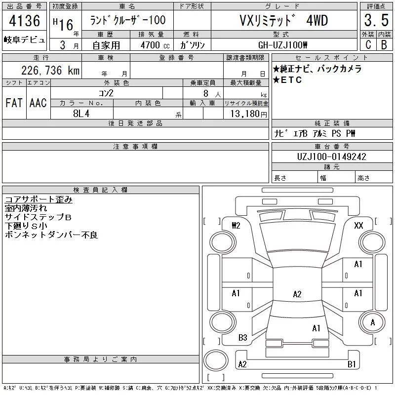 Toyota LAND CRUISER с аукциона Японии CAA Gifu лот № 4136