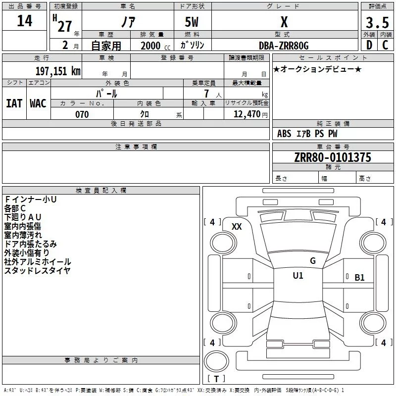 Toyota NOAH с аукциона Японии TAA Kinki лот № 14