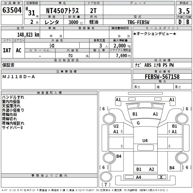 Nissan ATLAS с аукциона Японии TAA Kinki лот № 63504