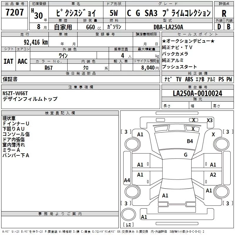 Toyota PIXIS JOY с аукциона Японии TAA Kinki лот № 7207
