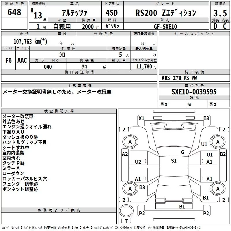 Toyota ALTEZZA с аукциона Японии TAA Kinki лот № 648
