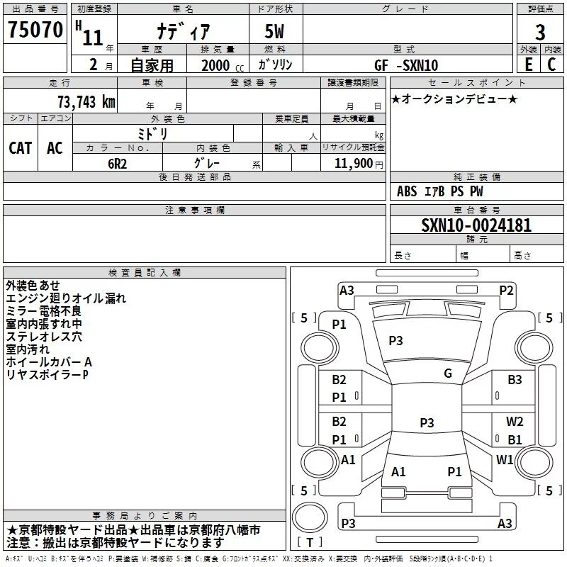 Toyota NADIA с аукциона Японии TAA Kinki лот № 75070