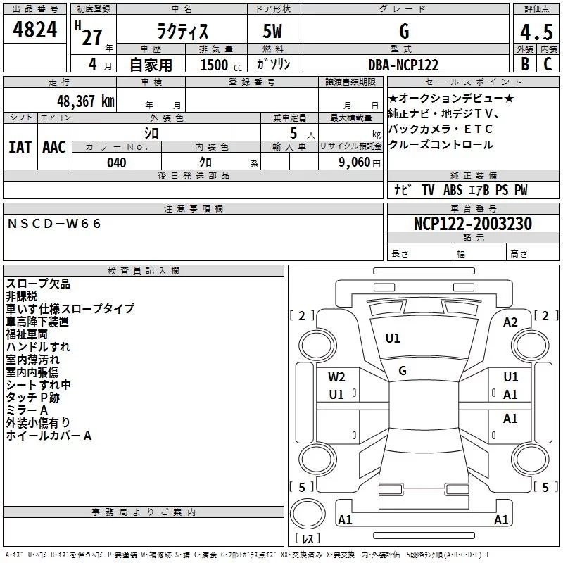 Toyota RACTIS с аукциона Японии TAA Kinki лот № 4824