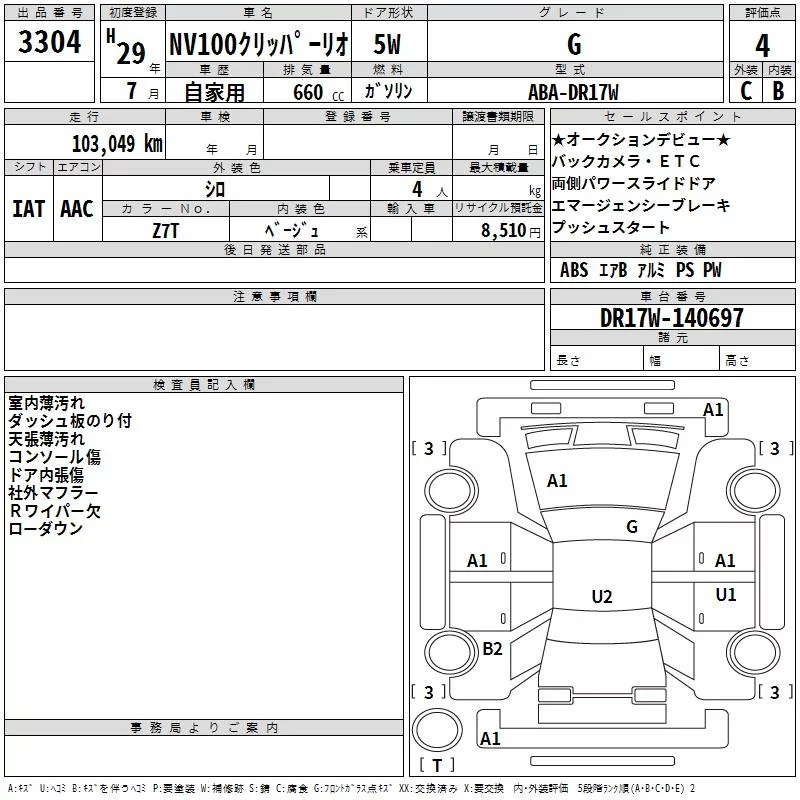 Nissan CLIPPER RIO с аукциона Японии TAA Kinki лот № 3304