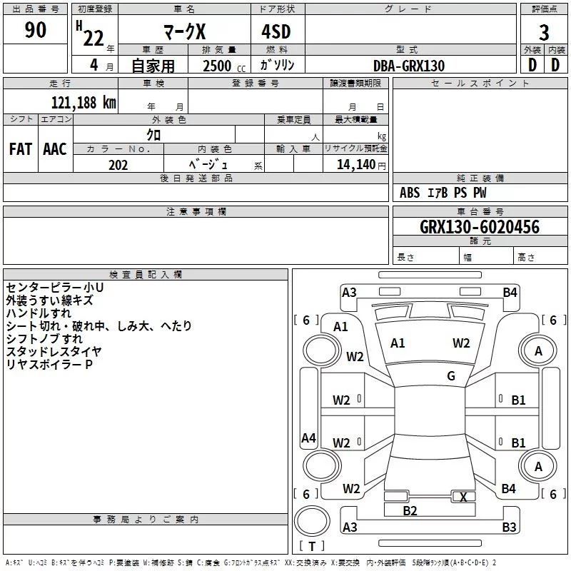 Toyota MARK X с аукциона Японии TAA Shikoku лот № 90