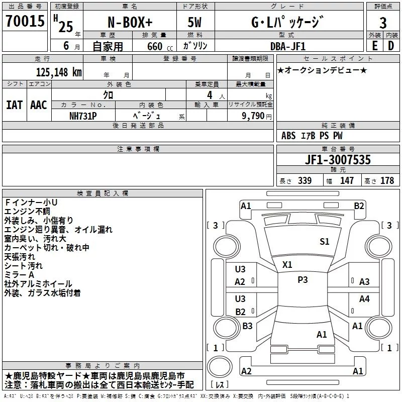 Honda N BOX PLUS с аукциона Японии TAA Minami Kyushu лот № 70015