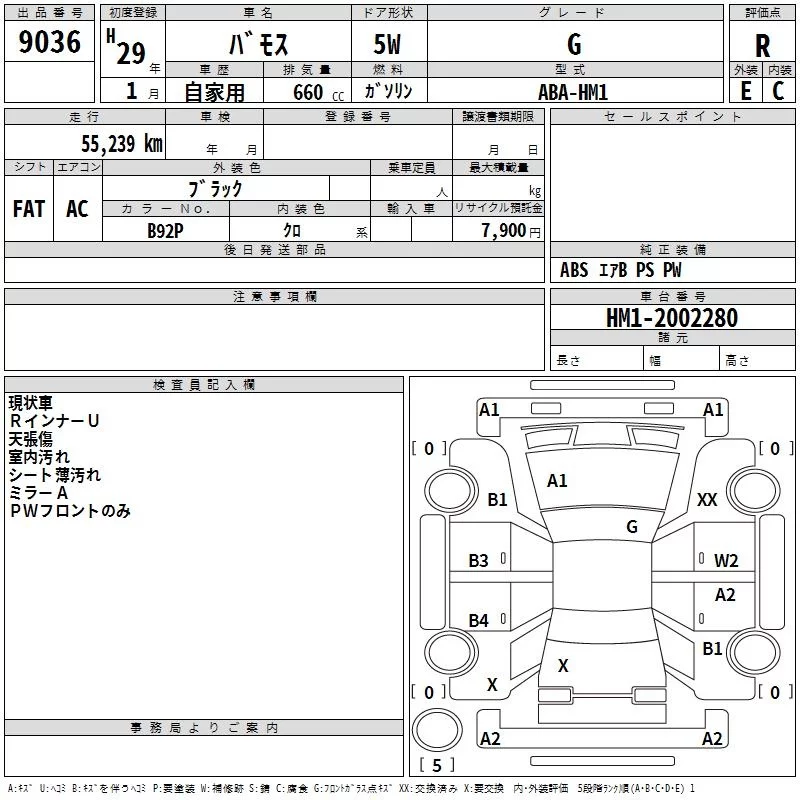 Honda VAMOS с аукциона Японии TAA Minami Kyushu лот № 9036