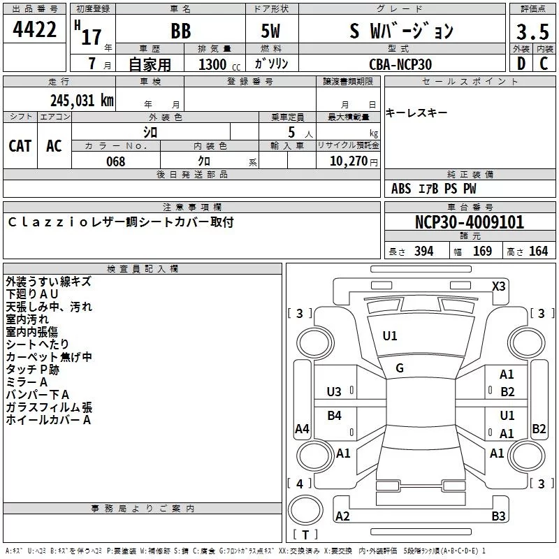 Toyota BB с аукциона Японии TAA Shikoku лот № 4422