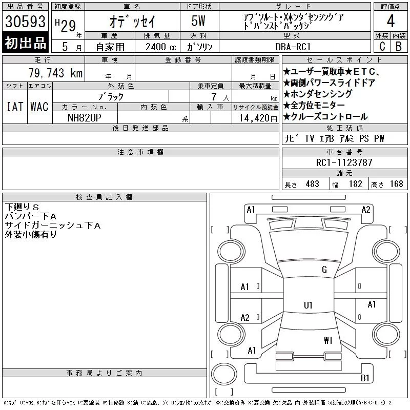 Honda ODYSSEY с аукциона Японии CAA Tokyo лот № 30593