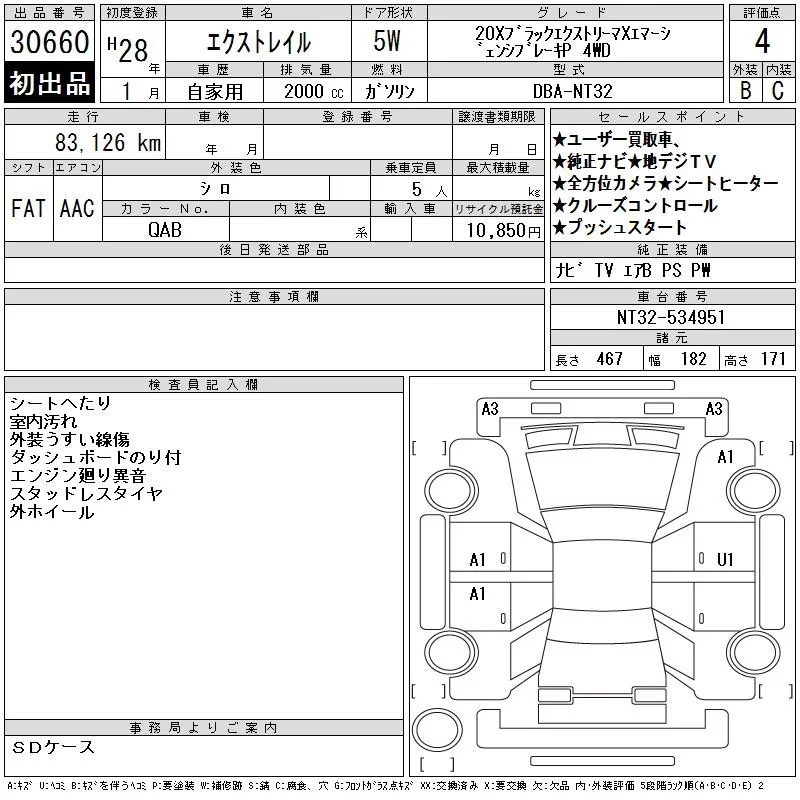 Nissan X-TRAIL с аукциона Японии CAA Tokyo лот № 30660