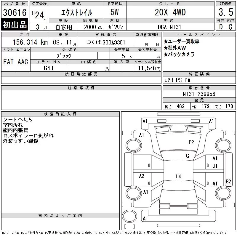 Nissan X-TRAIL с аукциона Японии CAA Tokyo лот № 30616