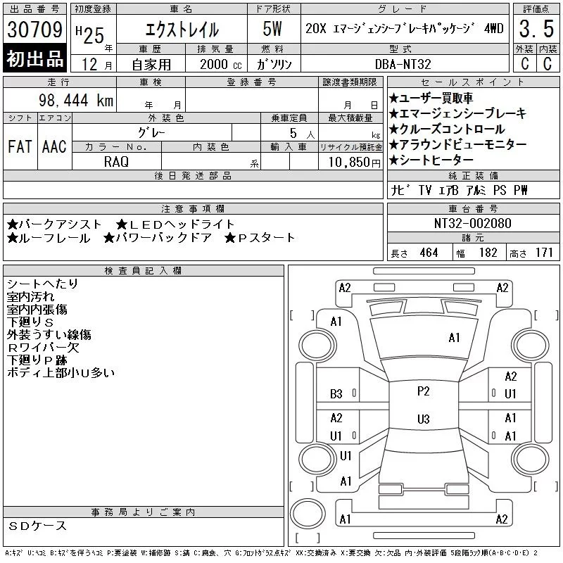 Nissan X-TRAIL с аукциона Японии CAA Tokyo лот № 30709
