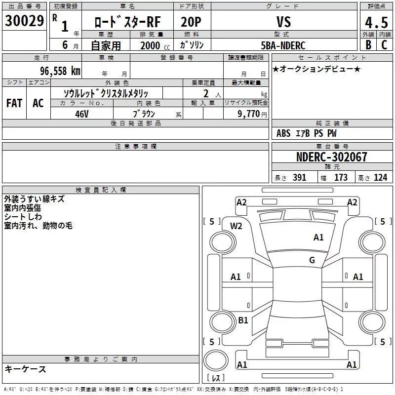 Mazda ROADSTER с аукциона Японии TAA Kyushu лот № 30029