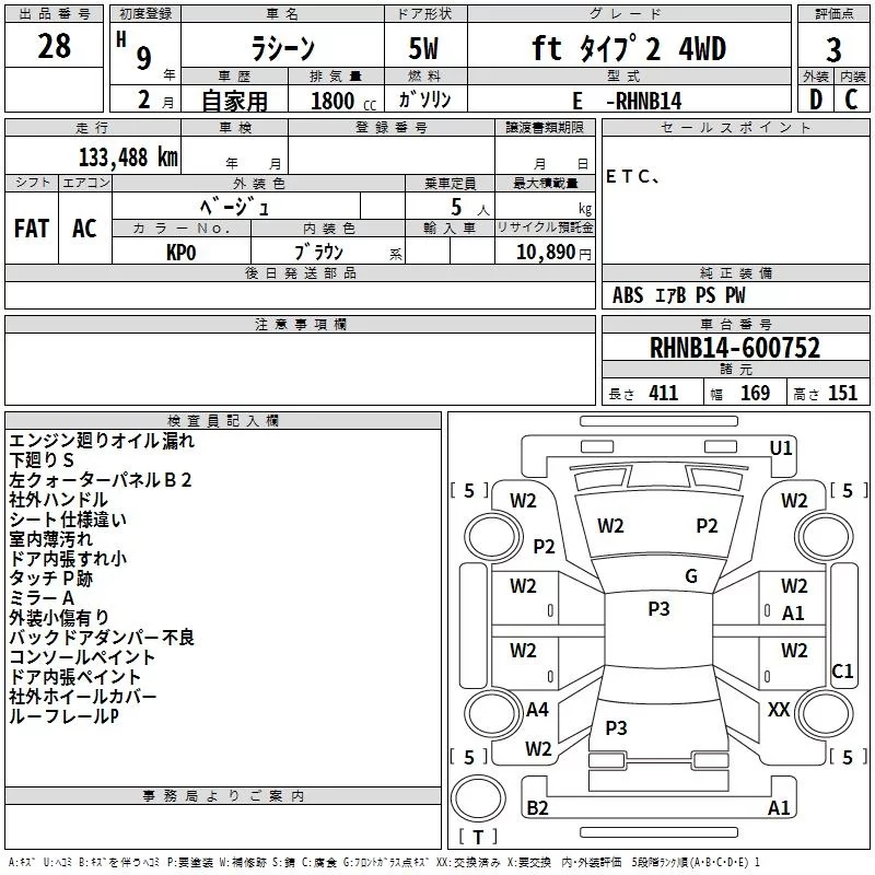 Nissan RASHEEN с аукциона Японии TAA Kinki лот № 28
