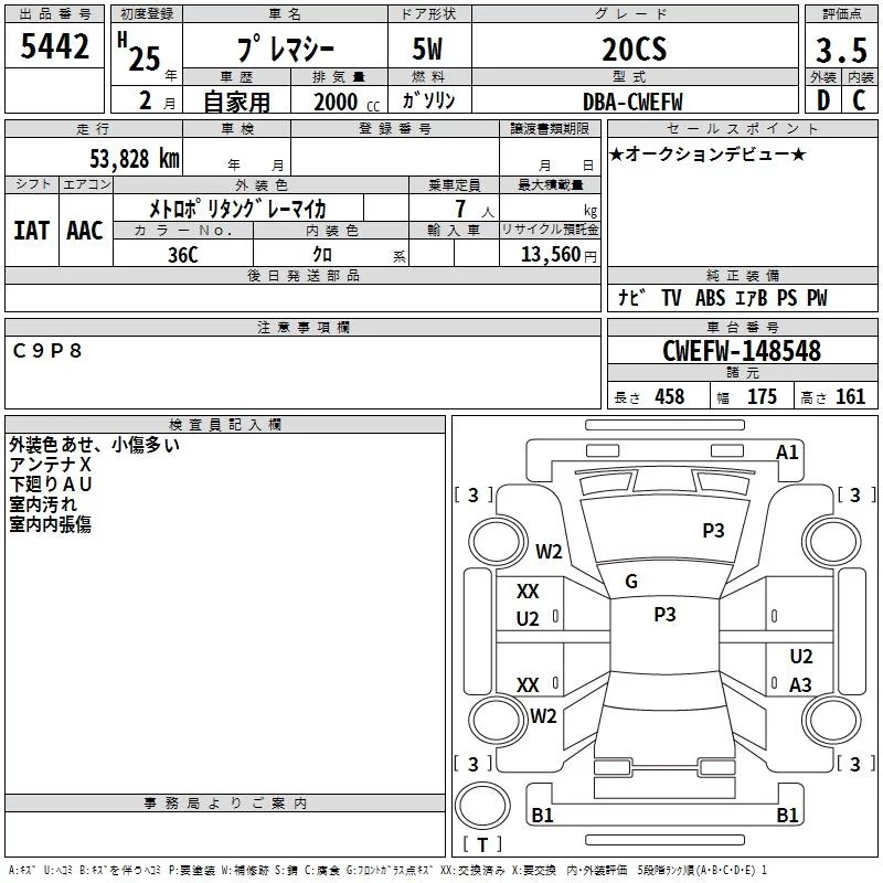 Mazda PREMACY с аукциона Японии TAA Kinki лот № 5442