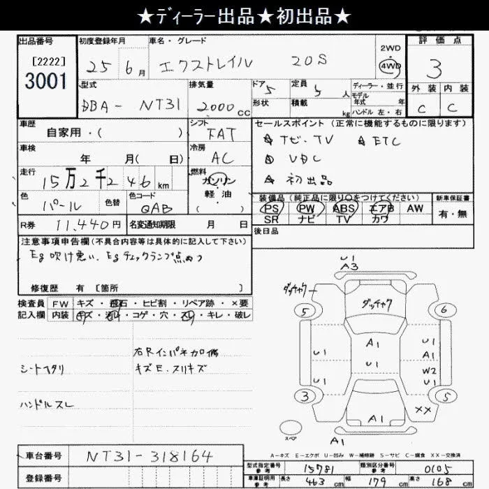 Nissan X-TRAIL с аукциона Японии JU Saitama лот № 3001