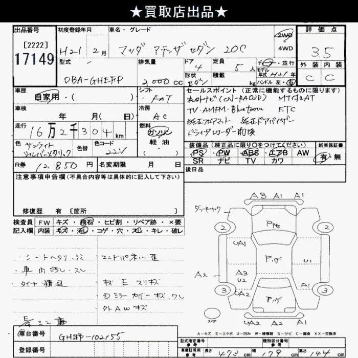 Mazda ATENZA SEDAN с аукциона Японии JU Saitama лот № 17149