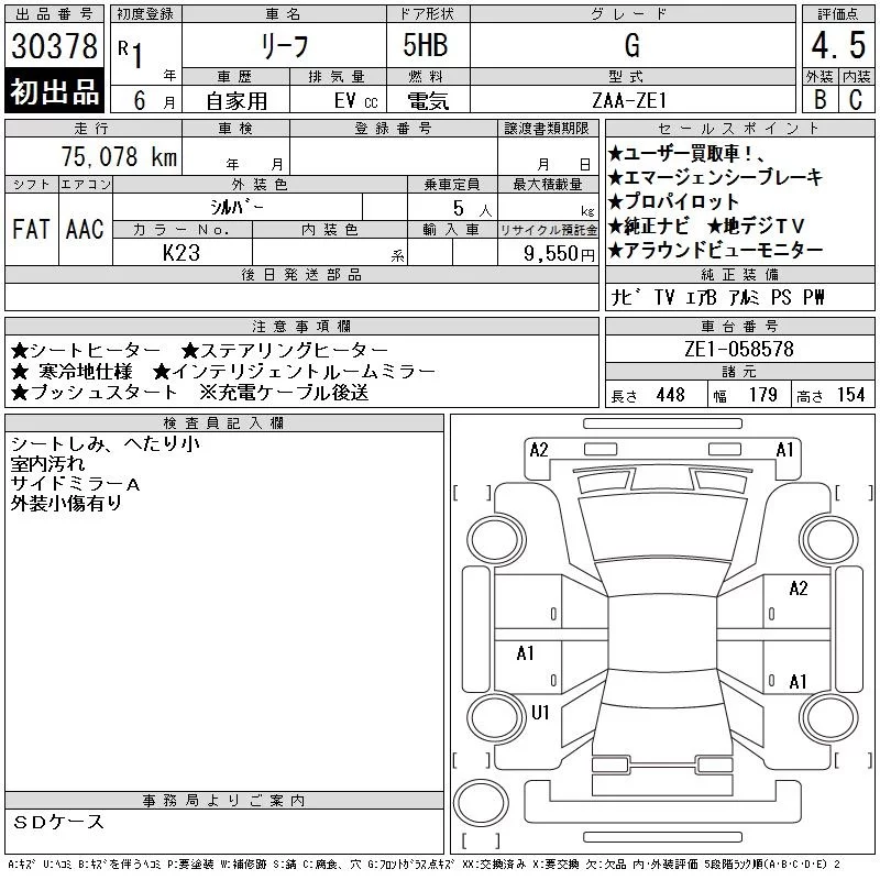 Nissan LEAF с аукциона Японии CAA Tokyo лот № 30378