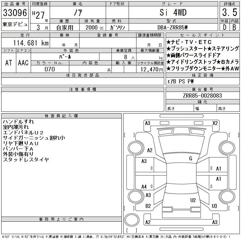 Toyota NOAH с аукциона Японии CAA Tokyo лот № 33096