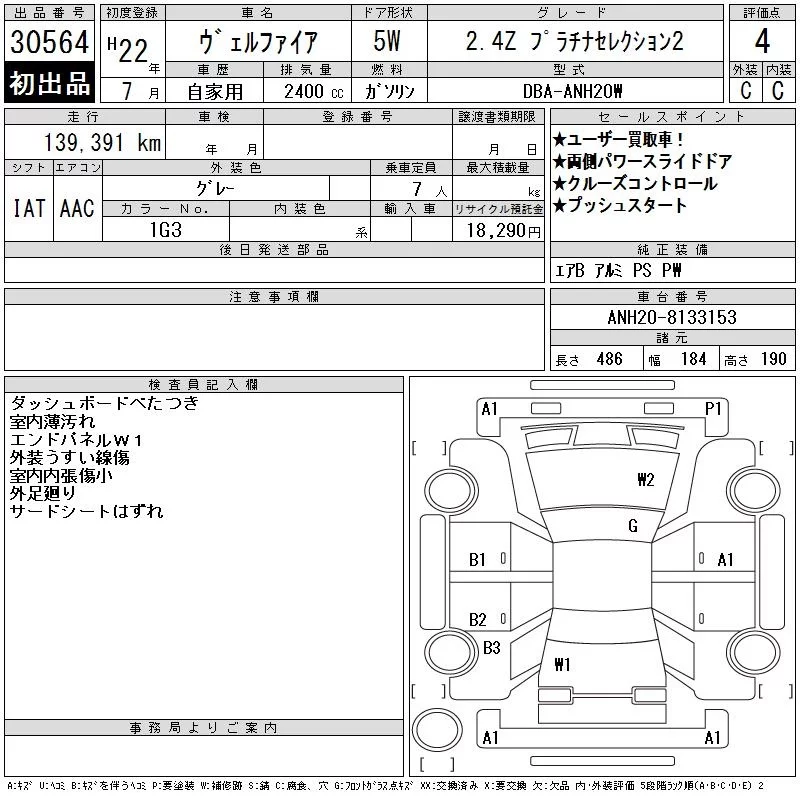 Toyota VELLFIRE с аукциона Японии CAA Tokyo лот № 30564