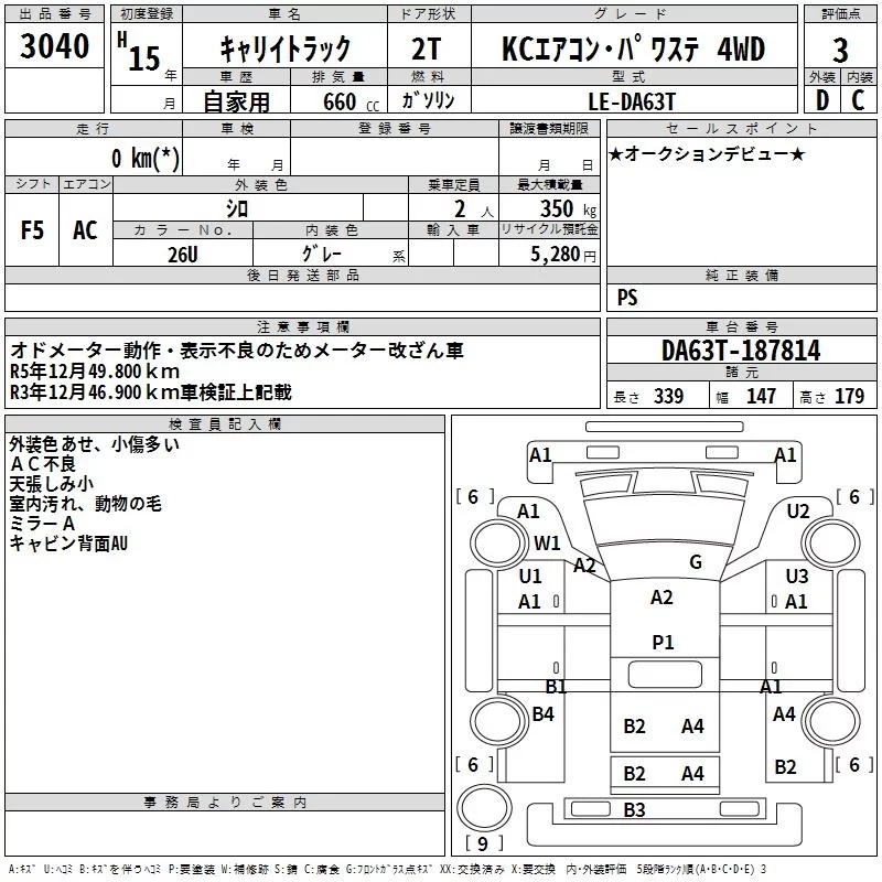 Suzuki CARRY TRUCK с аукциона Японии TAA Shikoku лот № 3040