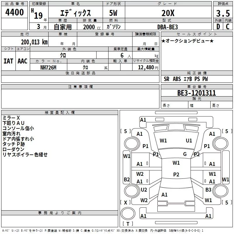 Honda EDIX с аукциона Японии TAA Shikoku лот № 4400