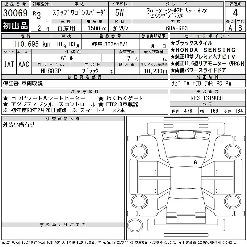 Honda STEP WAGON с аукциона Японии CAA Gifu лот № 30069