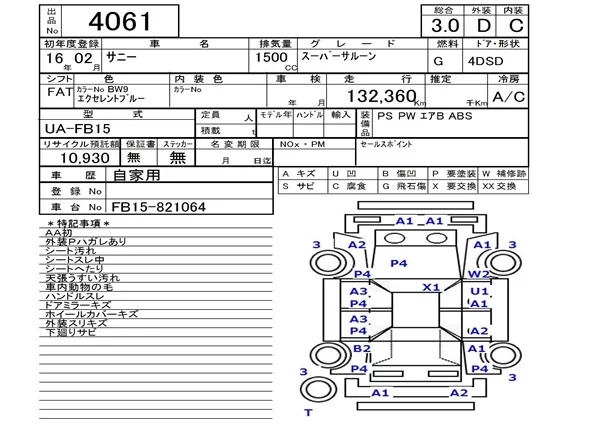 Nissan SUNNY с аукциона Японии NAA Fukuoka лот № 4061