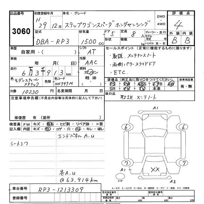 Honda STEP WAGON с аукциона Японии JU Shizuoka лот № 3060