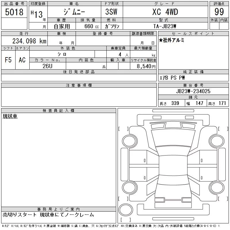 Suzuki JIMNY с аукциона Японии CAA Tohoku лот № 5018