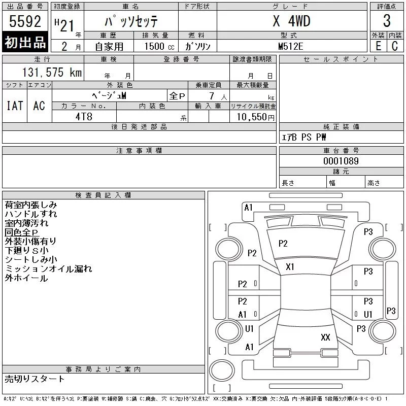 Toyota PASSO SETTE с аукциона Японии CAA Tohoku лот № 5592
