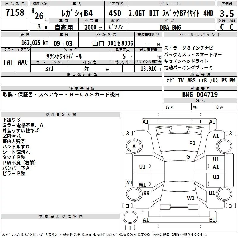 Subaru LEGACY B4 с аукциона Японии TAA Hiroshima лот № 7158