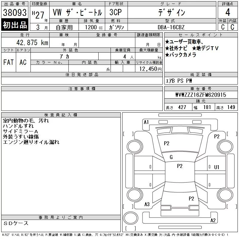 Volkswagen THE BEETLE с аукциона Японии CAA Tokyo лот № 38093