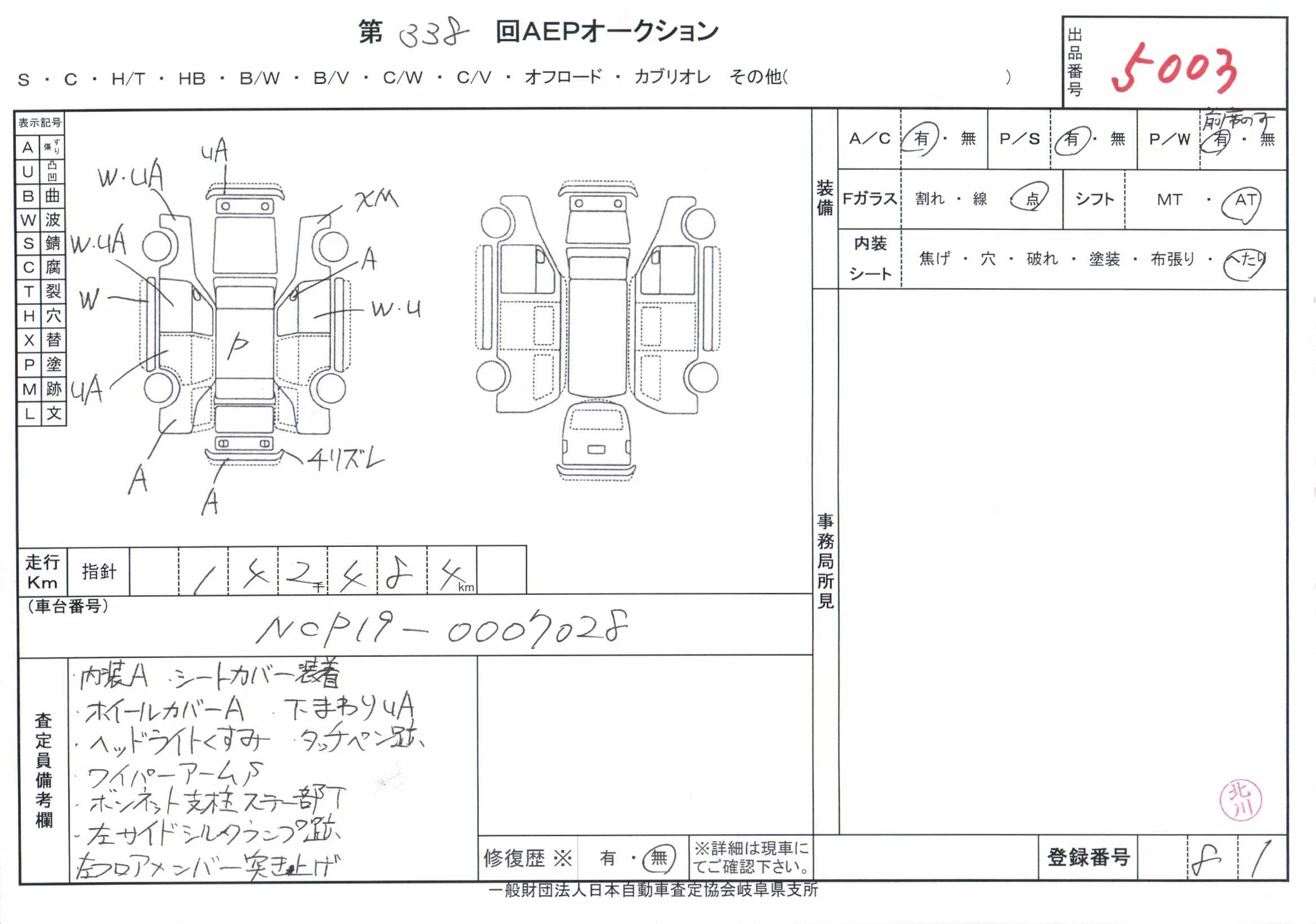 Toyota WILL VI с аукциона Японии AEP Nyusatsu лот № 5003