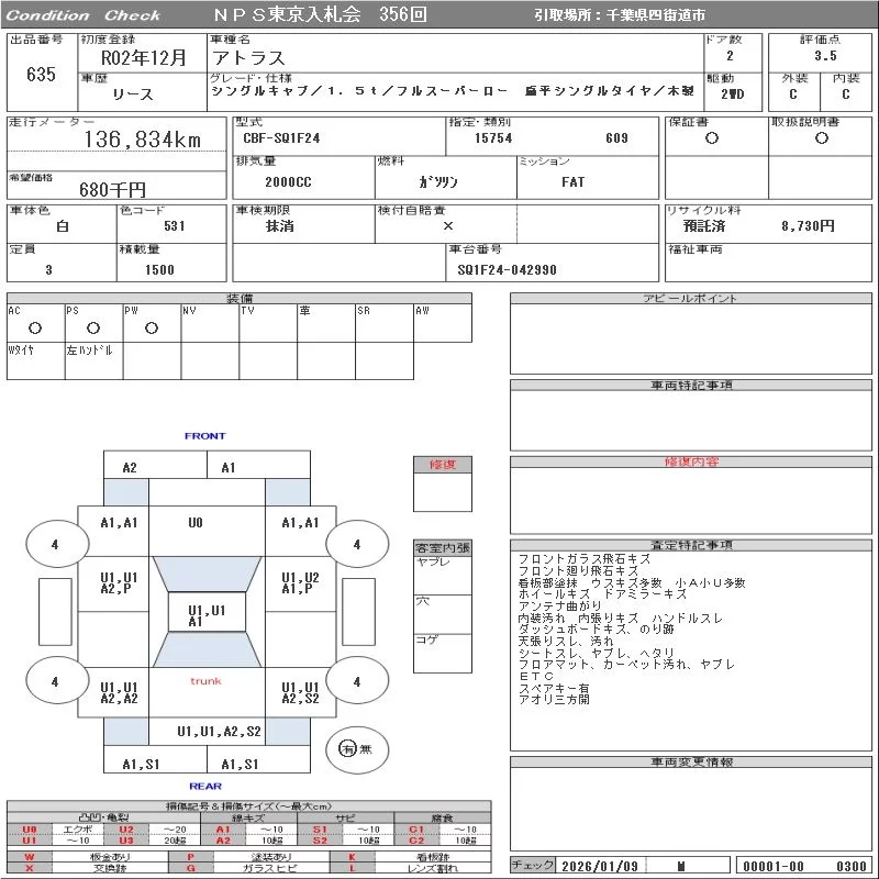 Nissan ATLAS с аукциона Японии NPS Tokyo Nyusatsu лот № 635