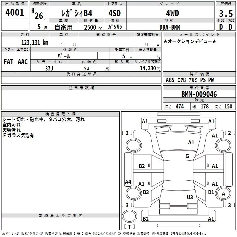 Subaru LEGACY B4 с аукциона Японии TAA Minami Kyushu лот № 4001